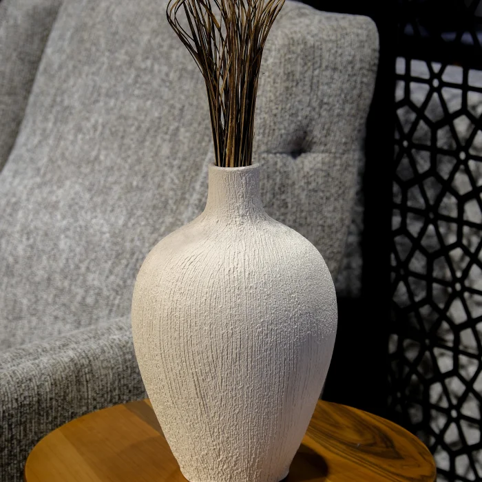 Reflecting the texture of nature, this terracotta vase stands out with its off-white tone and vertical lines on its upper surface. With its minimalist design and organic texture, it is the perfect choice to add a natural elegance to your room. Feature highlights: 1. Natural & Rustic Look: Its off-white color combines with the natural beauty of terracotta material, giving your room a rustic atmosphere. 2. vertical Line Texture: The vertical lines on the upper surface add a tactile richness and aesthetics to the vase. Each line gives the product a unique character. 3. Terracotta Durability: Terracotta is a material known for its durability and naturalness. This vase is designed to retain its elegance for many years to come. 4. Various Uses: With different size options, it can be used in various places such as living room, bedroom or office. Each vase will add warmth and elegance to your space. 1. This terracotta vase brings the beauties of nature to your home with a simple and elegant design. Add a natural touch to your room by adding it to your cart now.