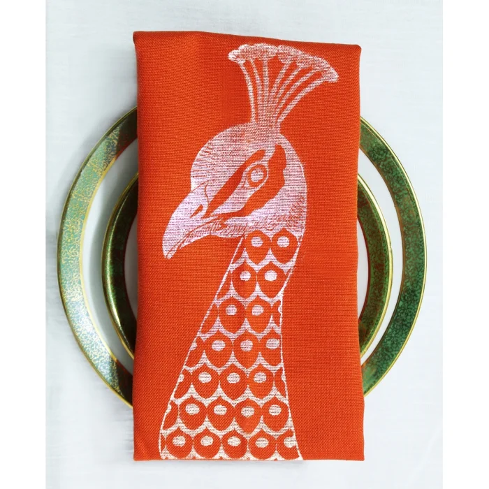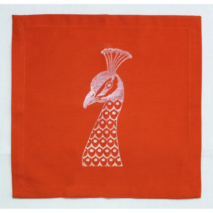 Set of 6 white 40x40 linen napkins. Sold as a 6-piece set. Linol hand print with organic dye on natural linen.