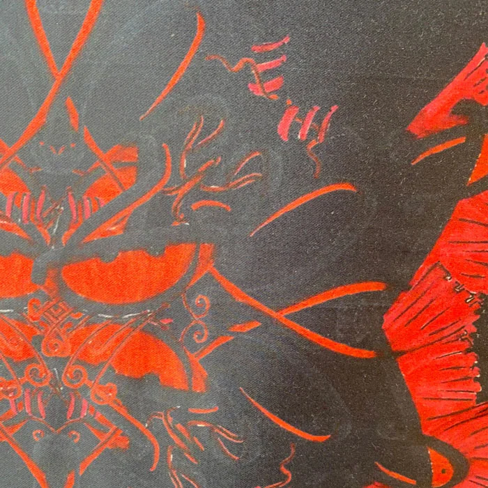 Contains polyester and elastane. Comes with feather padding. Fabric with back and front pattern.