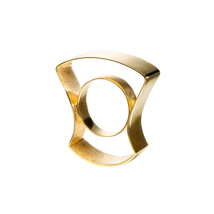 Designed by emphasizing the ergonomic structure, the Ergonomic ring is produced by 925 sterling silver with 14 carat gold.With 100% handmade production, the design offers different gold plating options, allowing buyers to create their own combinations.