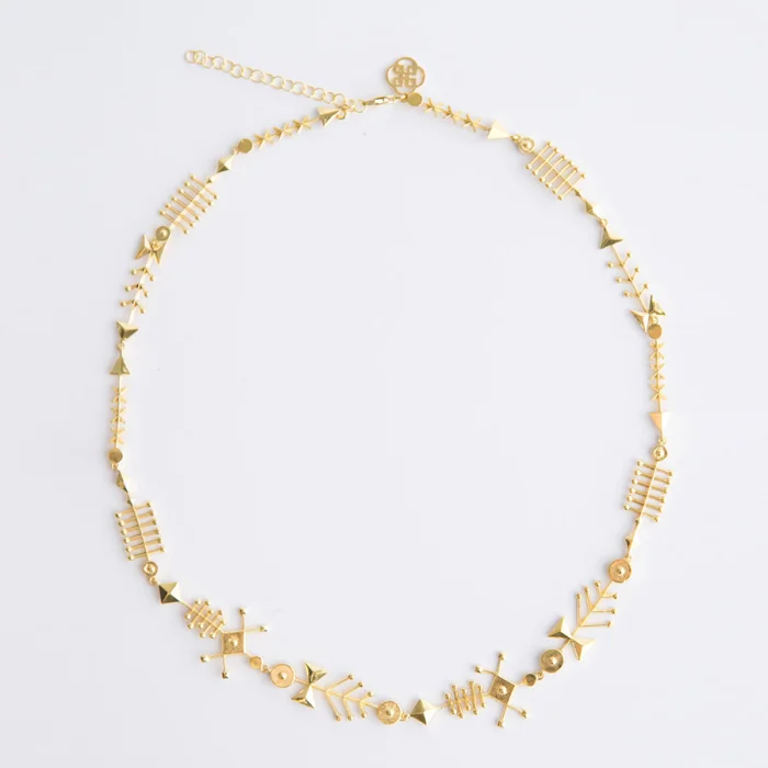 Designed by modernizing the "Dreamcatcher" tassels and inspired by geometry, Pie in the sky necklace is made by 925 sterling silver with 14 carat gold plating. All other pieces of the collection can be easily combined with each other