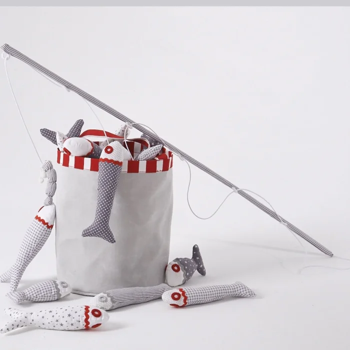 Our fishing game consists of 1 (one) bucket, 1 (one) fishing rod, 8 (eight) Minnak baby fish. The design and weight of the bucket are adjusted according to the carrying power of our little ones. Our fisherman game is produced in accordance with the conditions where our preschool children aged 2-5 can play safely.