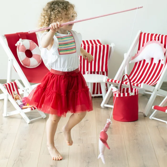 Our fishing game consists of 1 (one) bucket, 1 (one) fishing rod, 8 (eight) Minnak baby fish. The design and weight of the bucket are adjusted according to the carrying power of our little ones. Our fisherman game is produced in accordance with the conditions where our preschool children aged 2-5 can play safely.