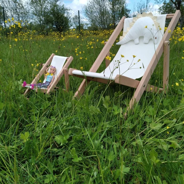 Educational Developer Solid Wood Modern Doll Seat. Game & Hobby Doll Seat. Fun Natural Children's Gift. Natural solid wood doll seat including one cushion. Doll lounge chair frame natural solid wood 20 * 30 * h: 27cm. Seat weight including cushion 523gr. Box weight 900gr. Seat cushion, indoor( indoor) upholstery fabric. The sale of the product includes one (1) pink-and-white striped cushion and one (1) wooden doll seat. The doll is used for décor purposes, the product is not included in our sale. Product: Designer Game Natural Wooden Doll Chair