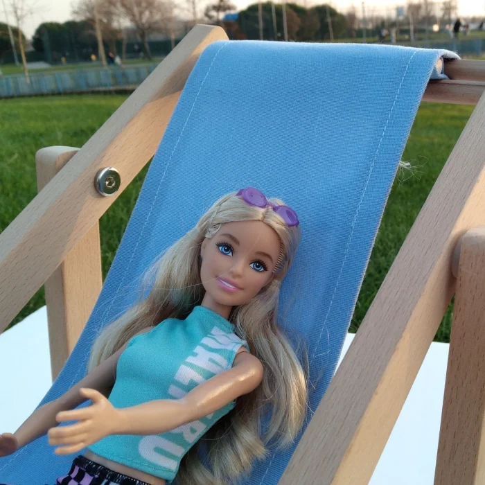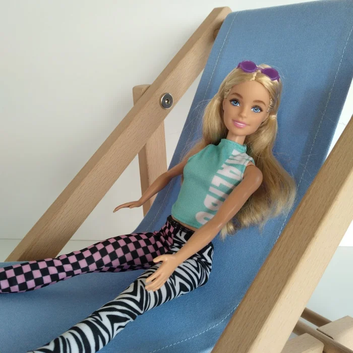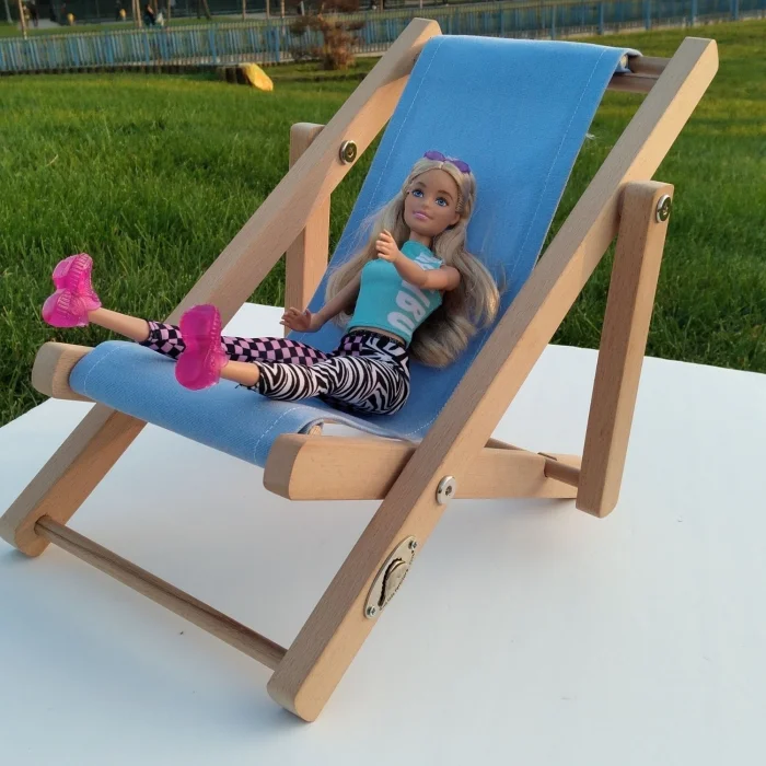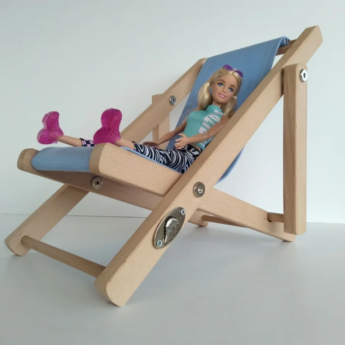 • Doll lounge chair frame natural solid wood 20 * 30 * h: 27cm. Seat weight including cushion 523gr. Box weight 900gr.