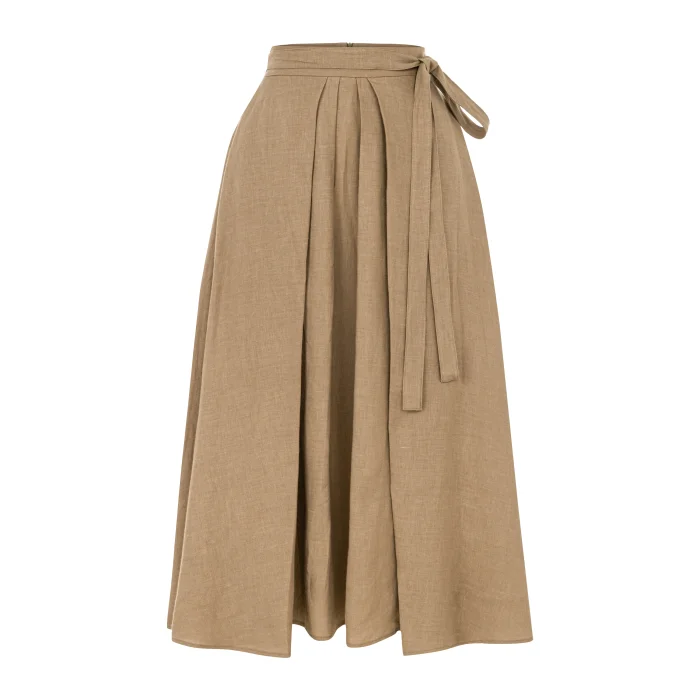 Pleated skirt with belt, 100% Belgian Linen, Model Size: S - Height:176 cm, Bust: 81 cm, Waist:64 cm, Hips: 89 cm