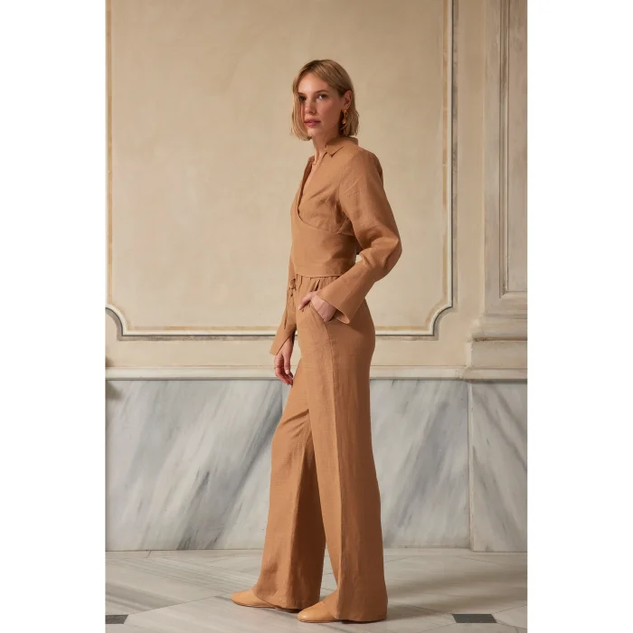 V neck wrap shirt, button fastening at back waist, cutout at waist, 100% Belgian Linen, Model Size: S - Height:176 cm, Bust: 81 cm, Waist:64 cm, Hips: 89 cm