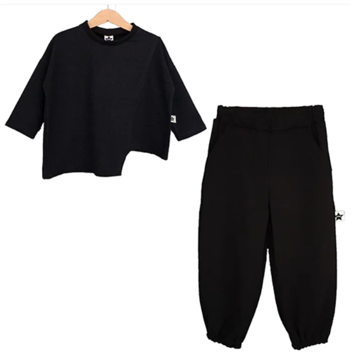 Black, Long Sleeve, Asymmetric Tee, Black Sinbad Harem Pant Set