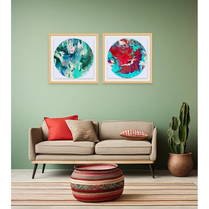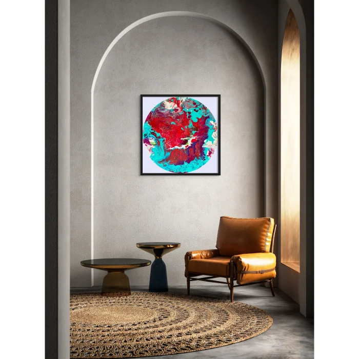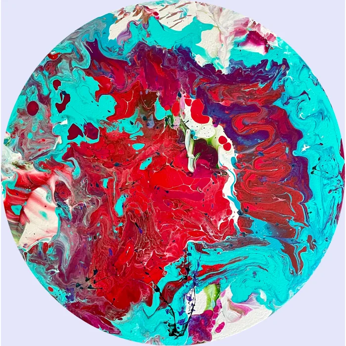 Signed single product. Made with acrylic paint using pouring technique on MDF, varnish is applied. It will be delivered unframed, it can be hung directly on the wall with an apparatus or double-sided tape. Apart from being used as a painting, it can be used as a service accessory.