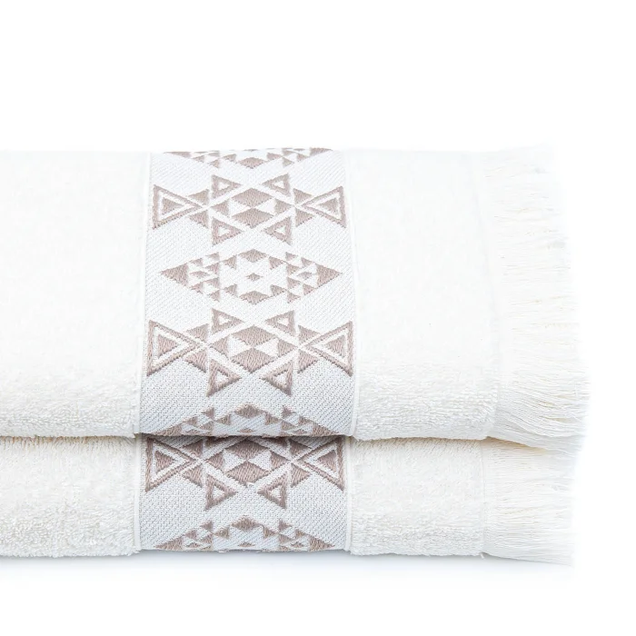Made of 100% cotton, designed to be suitable for your skin's sensitivity with its soft texture. Provides practical use with its absorbency and fast-drying feature. There is no fading in their colors and they remain as new for many years. Completes your home decoration with its ethnic pattern and stylish design. It is a towel set suitable for versatile use.