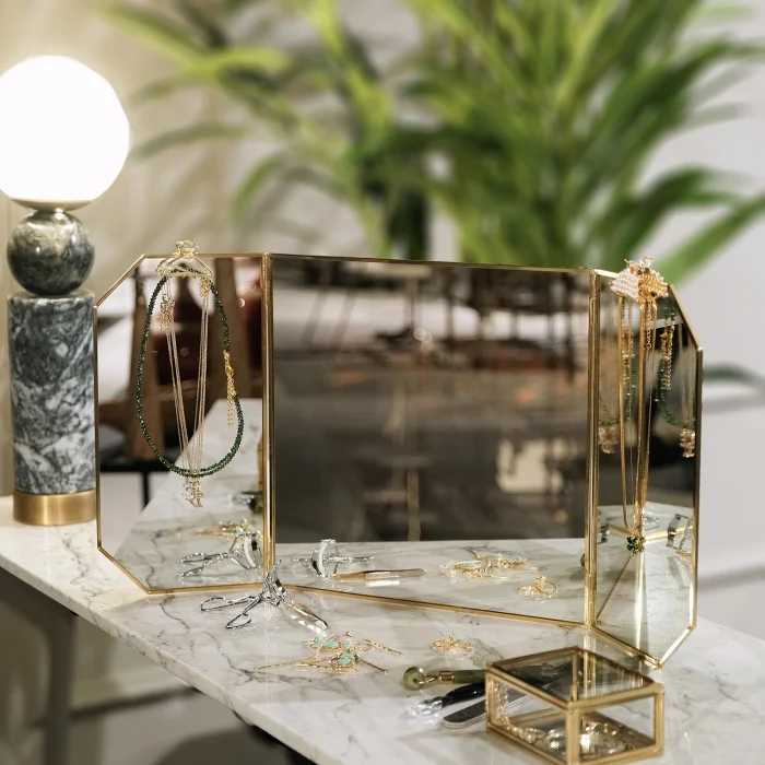 Product: Adjustable Makeup Mirror With Raw Brass Desktop Cover