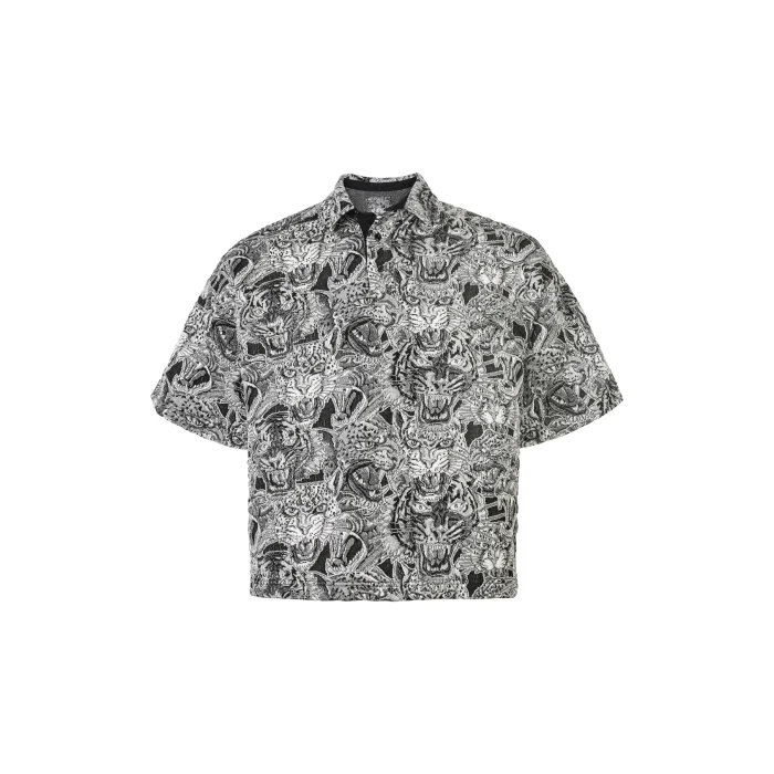 It is jacquard and loose-fitting. It has a wild theme pattern with gray-black-and-white details.
