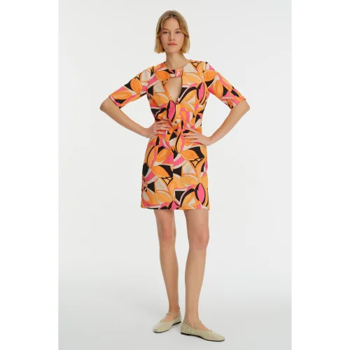 Product: Short Sleeve Low-cut Mini Patterned Dress