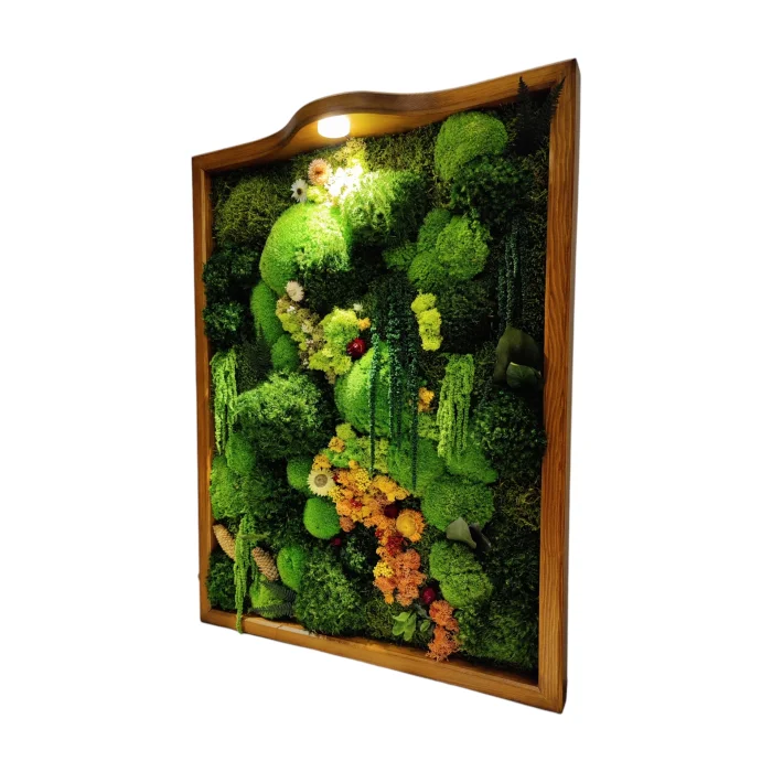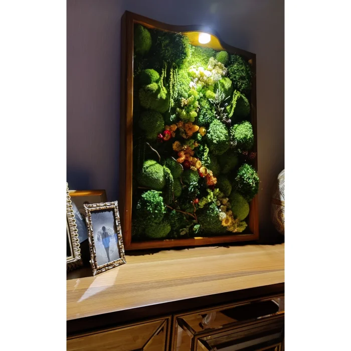 Welcome to FiplantartworksPlease read for detailed information about the products and work done.Meet our 100% natural products that do not require maintenance in your nature environment. you will love them very much.This listing is for one 31x23 inc real wood framed preserved reindeer moss wall art. Please message me if you have any questions.Size 31x23Visit our shop for more sizes and color optionThis unique moss wall art is made from truly preserved moss. does not require maintenance or even sunlight. Beautiful decorated with white thistles and dried flowers This framed wall art will add a vibrant color Including plants in your space has been shown to reduce stress and anxiety. It will bring peace to your body as well as encourage feelings of happiness.Preserved moss is moss that has been put through a drying process for conservation and sustainability. The process begins with handpicking natural moss from California. Then it goes through a drying and preserving process.This process makes it so your moss art needs no care. Our moss is maintenance free!!!