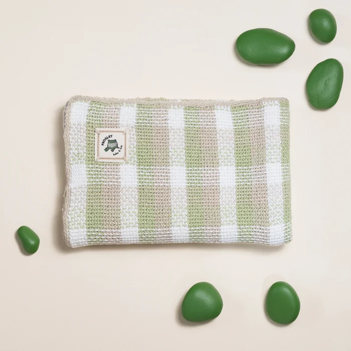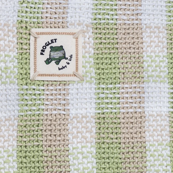 • double-sided; gingham on the front, striped in purl stitch on the back