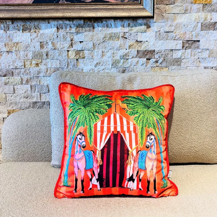 Product: Horse Pattern Orange Velvet Cushion Cover