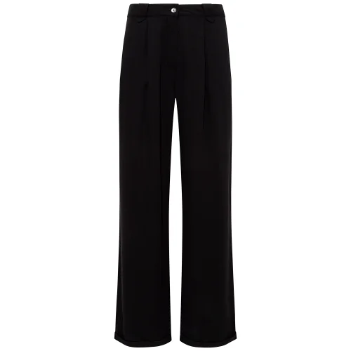Having a loose and comfortable form with its mid-rise waist, front pleats, side pockets and wide legs, the WIDE LEG PANT is very convenient to transform into an office outfit, and to make an easy transition from day to night with the matching ALL AT OCE VEST from the same fabric. The model is 1.74 tall, 55 kilos and wears an S.