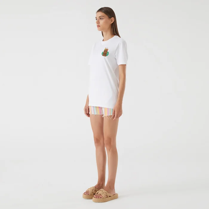 Tişörtlerde kullanılan desenler nakış tekniği uygulanarak işlenmiştir.