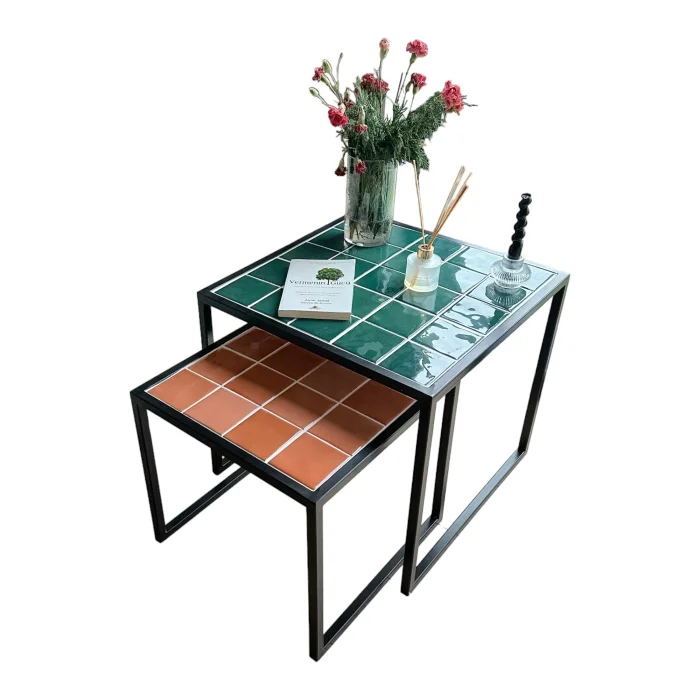 Measures: 44X44X40h 54X54X50h Pieces Weight: 7 kg Coating: Ceramic, glass mosaic or natural stone Frame: Metal Uses: Indoors and outdoors Delivery: 21 working days Made to order Since it is a handmade product, minor errors may appear