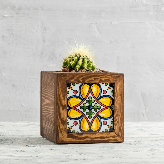 Product: Wooden Planter With Mexican Tiles-1 Tiled