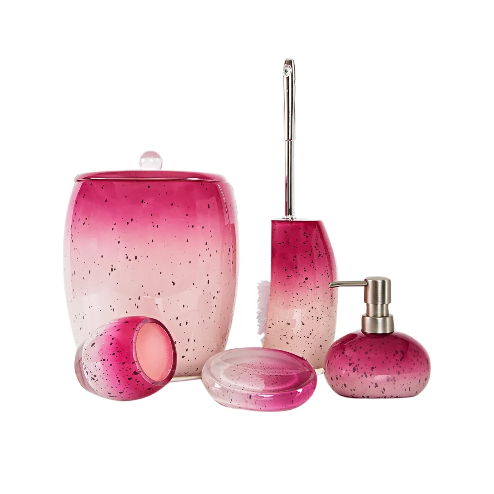 Material: 100% Polirersin Content: 1 liquid soap, 1 solid soap, 1 toothbrush, 1 toilet brush, 1 bath bucket