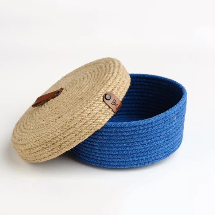 Stylish decorative 100% handmade cotton rope basket with lid in sizes 20×8 that you can use as an organizer. You can use it to organize your belongings in every area of your home.