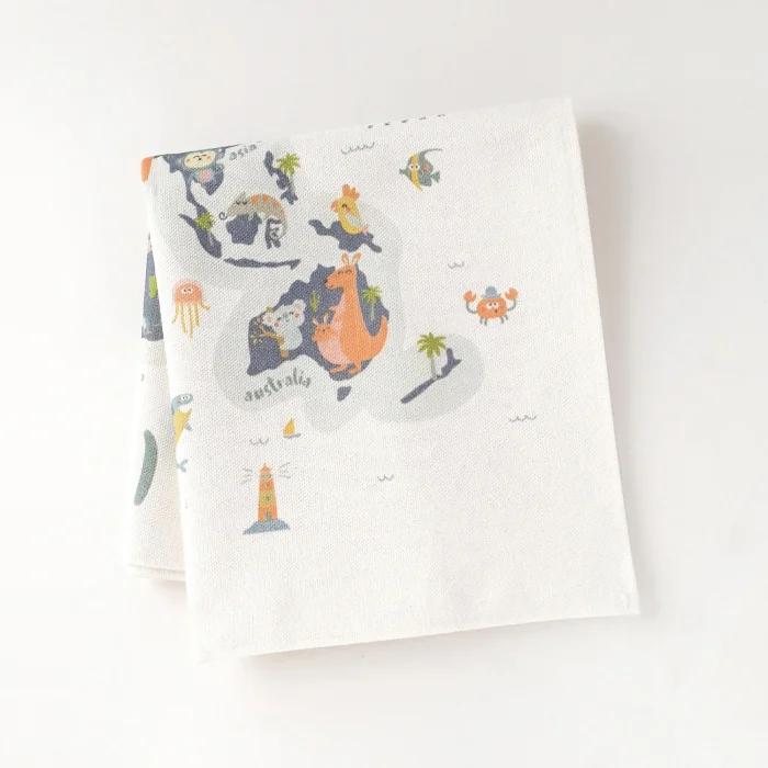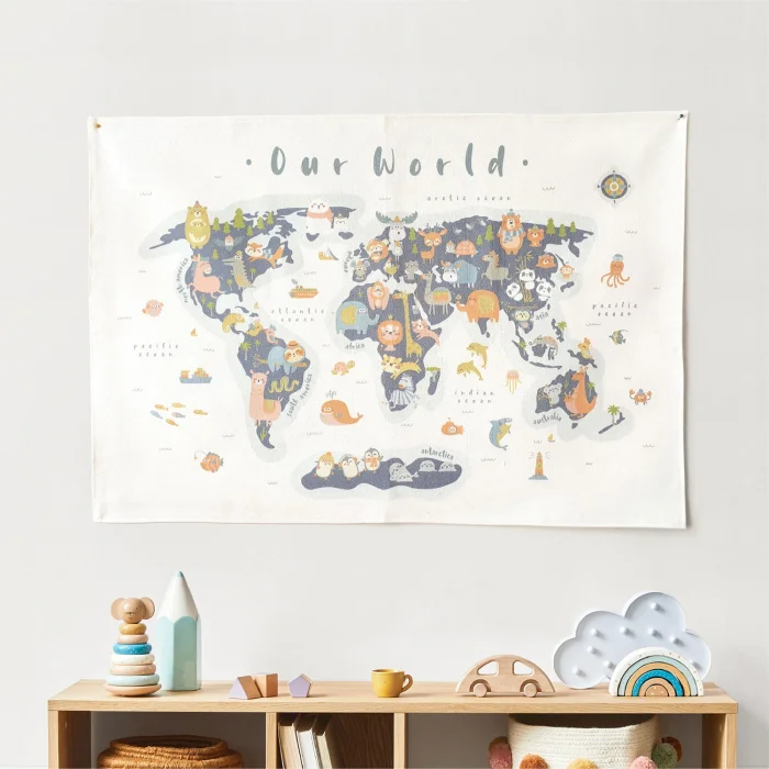 Animal World Map Wall Tapestry, Organic Natural Cotton