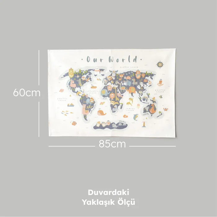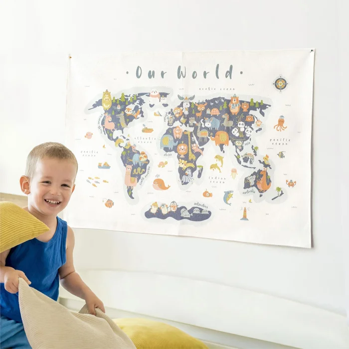 Product: Animal World Map Wall Tapestry, Organic Natural Cotton