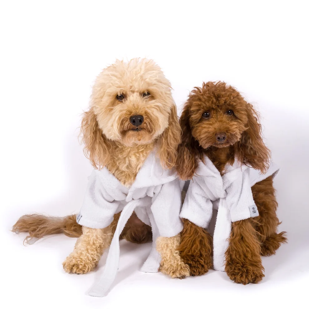Our super soft, ultra absorbent terry cloth bathrobes will look fabulous  on your pawfriend! Be sure to check your friend’s size prior to ordering! ♡
