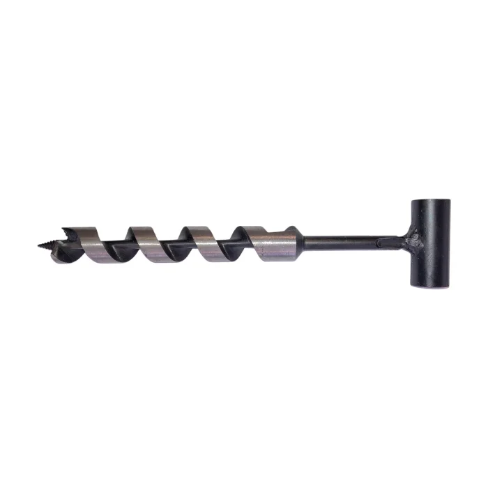 When using a hand auger, take care to keep the auger upright and not tilt it left and right. The augers are made of hard steel and are designed for a lifetime of use. After the screw guide in the front part enters the wood, tilting to the right and left can create too much force in the screw part, so be sure to use it upright.