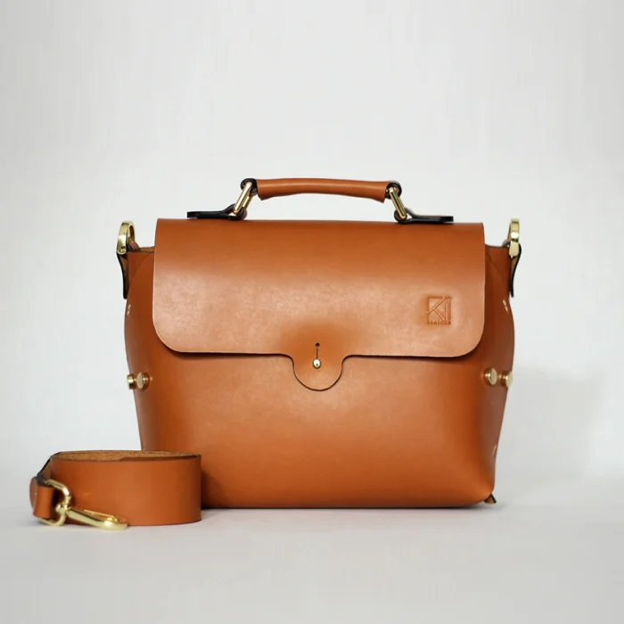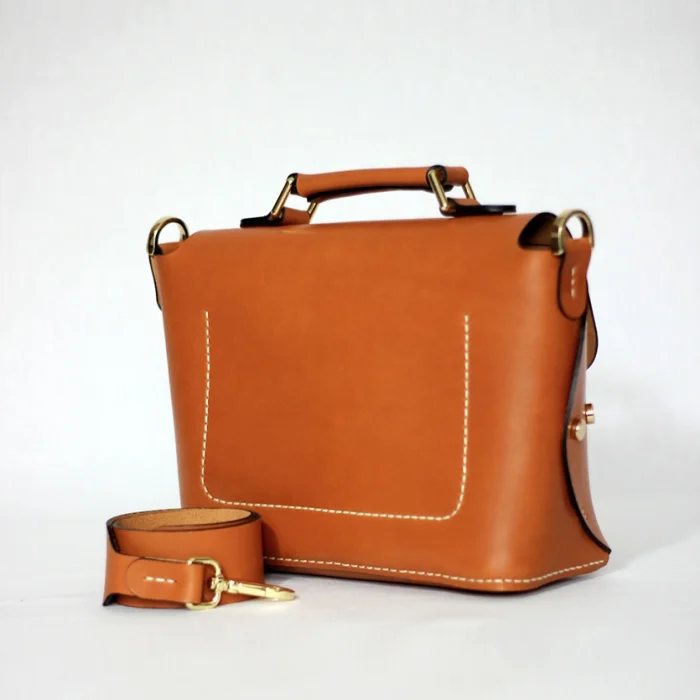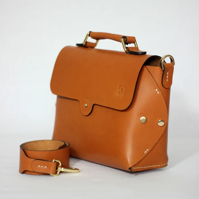 Material Used: Genuine calf leather, high quality metal accessories in light gold color and polyester waxed rope. Dimensions: Width 26 cm, Height 20 cm, Depth: 10 cm.