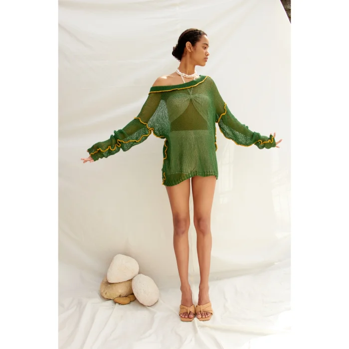 Mesh knit thin knit sweater Reverse stitch trimmed Material: 50% Cotton 50% Acrylic Made in: Turkey