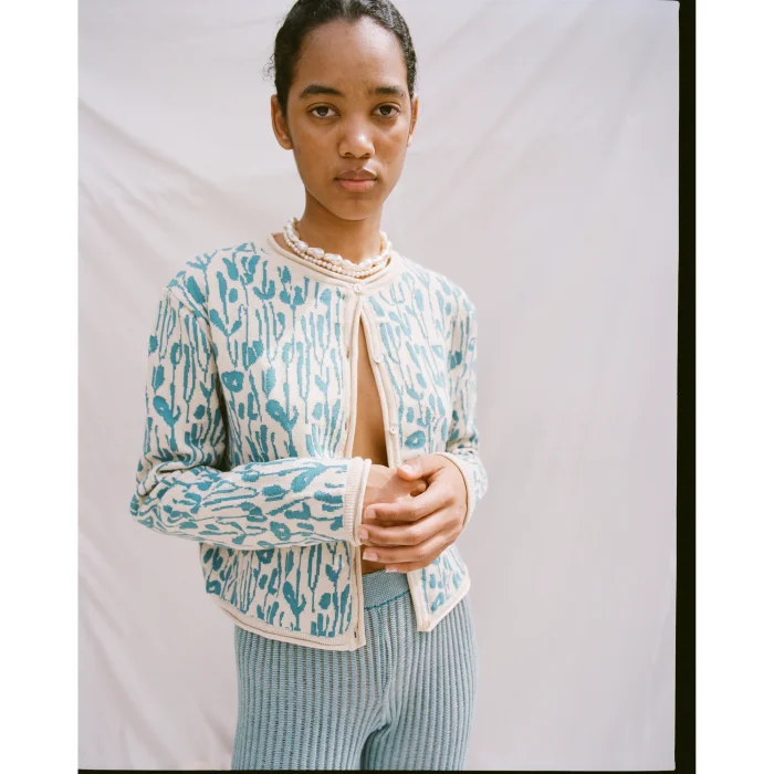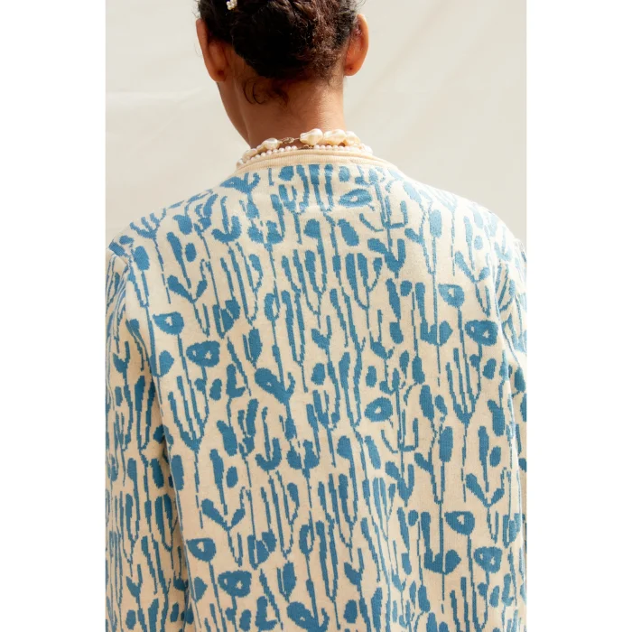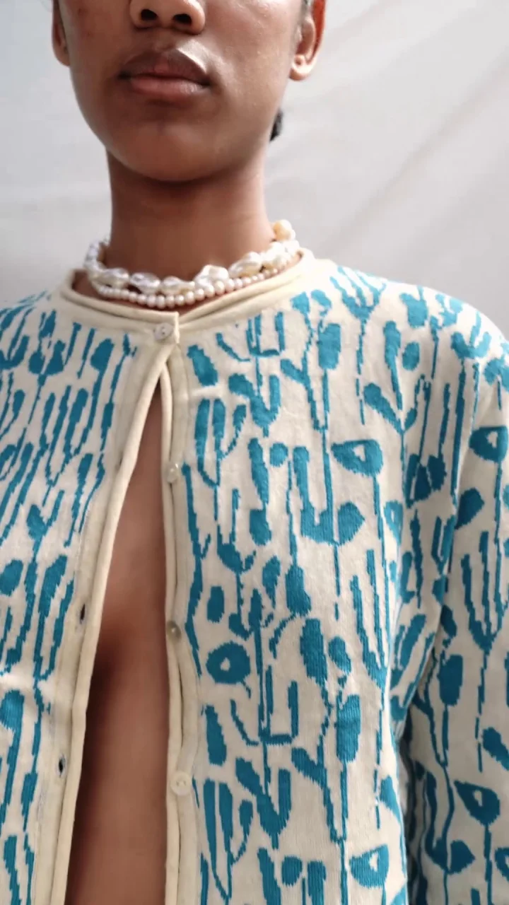 Knit cardigan with jacquard mother-of-pearl buttons Material: 50% Cotton 50% Acrylic Made in: Turkey S-M Width: 51cm Height: 47cm Sleeve length: 58cm Arm end width: 10cm