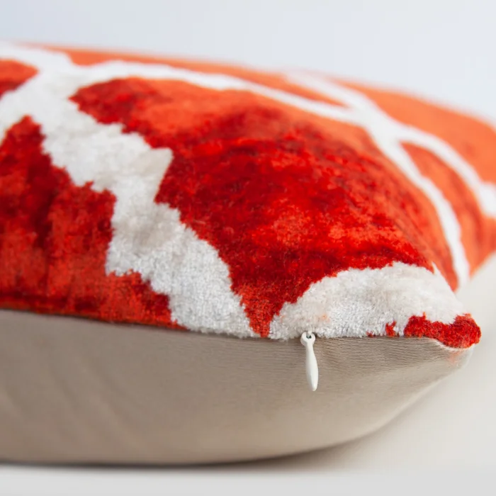 • Hand-woven silk velvet ikat pillow cover made in Istanbul.