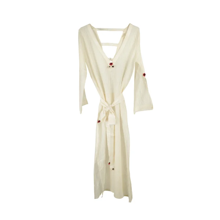 The 100% Cotton Hand-Woven fabric of the Handmade Gelincik Caftan Dress takes shape in the hands of a meticulous Artisan; later on, it came to life in the form of "GELİNCİK OYASI" on the fingertips of a talented Turkish woman.