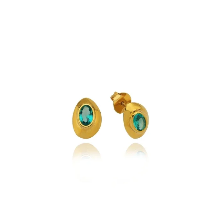 925 Sterling Silver 22K Gold Plated Earring Gram:1.58 Stone Colors:Green, White, Pink