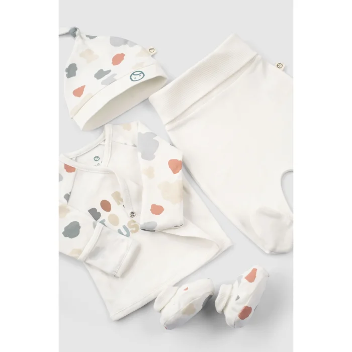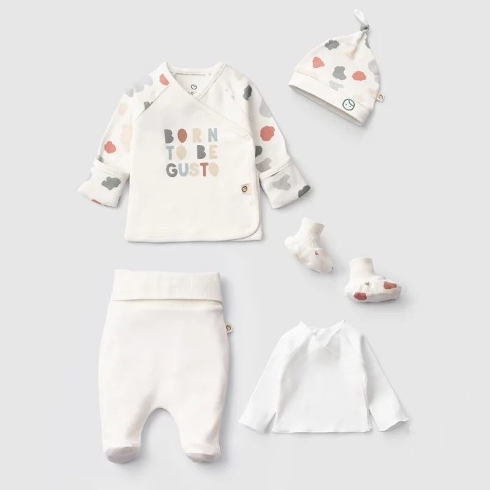 • Our hospital exit set, which is produced from organic fabric, consists of five pieces.