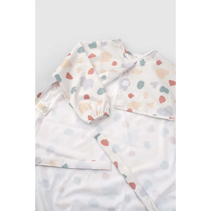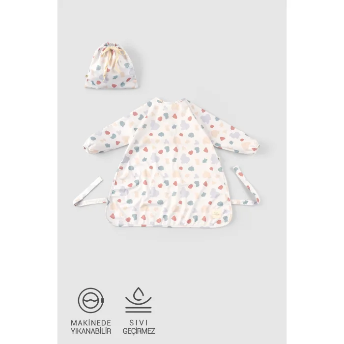 - Our aprons are long sleeved, sleeve cuffs are rubberized. In this way, it protects your baby's arms.
