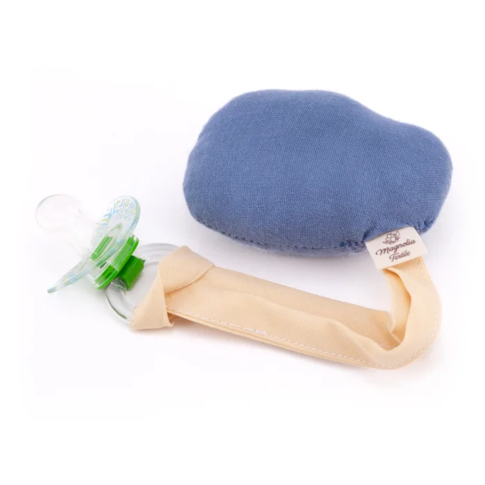The teether/pacifier holder, which we produce from super soft, organic, handmade 2-ply muslin fabric, is in the shape of a cute egg. Your baby can hold the egg-shaped toothpiece with his hand, stimulating his senses and supporting the development of his motor skills. It can be a baby's first toy.