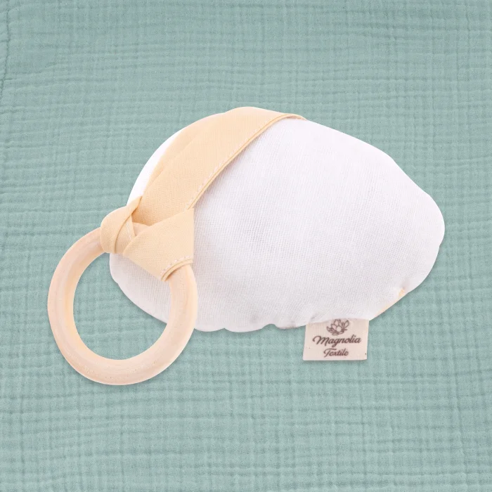 Made from high-quality organic muslin fabric, this soft padded teether provides relief, especially during teething periods. The sound of rattles helps babies improve their hearing. In this way, your baby interacts with the toy while learning to distinguish between different sounds, while at the same time contributing to your baby's mental development.