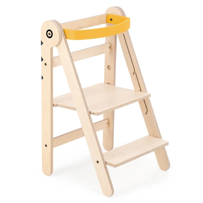 Fold is a learning tower that allows Babies to make cakes and pies with their parents in the kitchen. With its folding feature, it not only provides space for narrow spaces when not in use, but also provides convenience when moving from one room to another. It can be used easily from 12 months to 5 years old with its 3 adjustable heights. Fold is made of natural wood material and birch wood is used in its construction. For this reason, no chemicals are found in the product. There are no sharp corners in the product that may harm or pose a risk to your baby. You can use it with peace of mind and contribute to your baby's learning process.