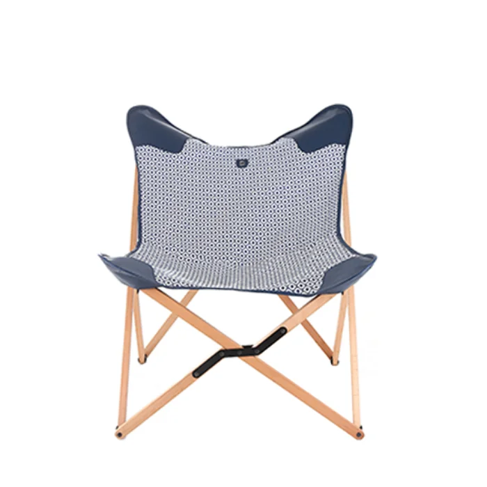 Our tripolina armchairs are produced for your liking, with navy blue and white outdoor woven fabric and navy blue genuine leather corner details. Its wood is completely handcrafted with first-class kiln-dried beech wood. Made for outdoors, it is polished in a silk matte natural color. It is foldable. The closed state is 116 cm x 12 cm. Its weight is 6 Kg. It is also supplied with a carrying bag for easy carrying.