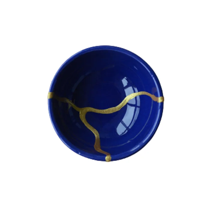Ceramic bowl, handmade in Iznik, Turkey. The bowl is not broken. As seen on images, lines are drawn on the surface of the bowl by golden paint. It has crackles at ceramic glaze which gives it a texture.