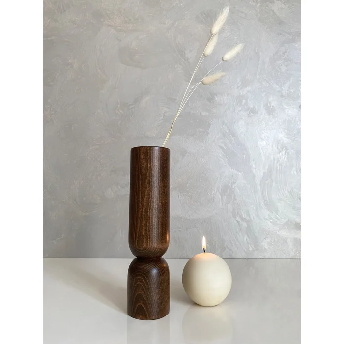 The height of the vase is 25 cm, its outer diameter is 6.5 cm, and its inner diameter to hold flowers is 4 cm.