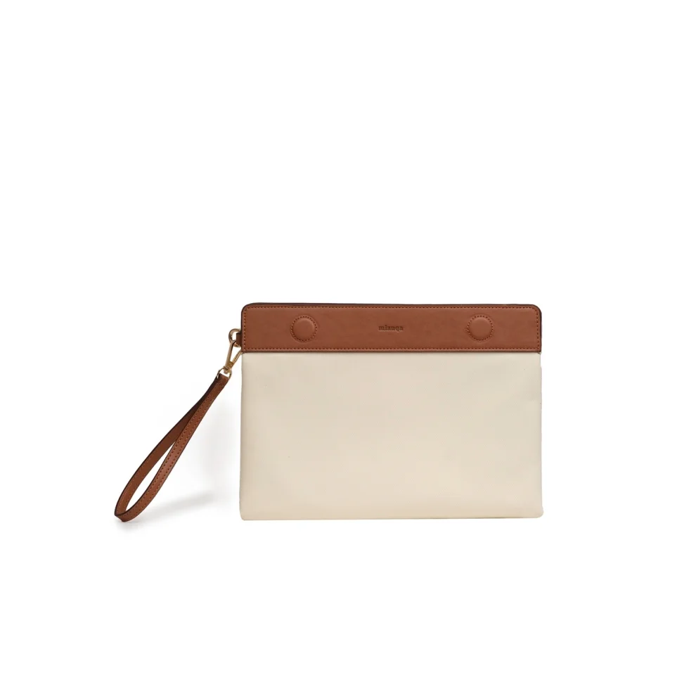 Designed with modern details, our clutch bag is made of deadstock fabrics and vegan apple leather. Apple Leather is an animal free and plant-based leather alternative, produced using fibres derived as residuals from the industrial processing of apples. The inside is lined with a fabric recycled from pet bottles, and contains a zipper pocket and a phone sleeve.