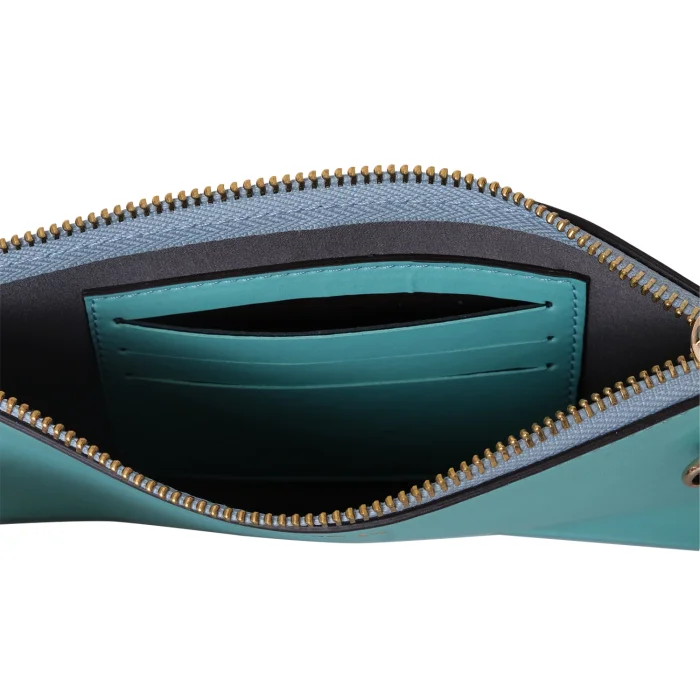 Made of plant-based vegan apple leather, lined with recycled polyester fabric, recycled from pet bottles. Ideal size to contain your large size phone, and passport.