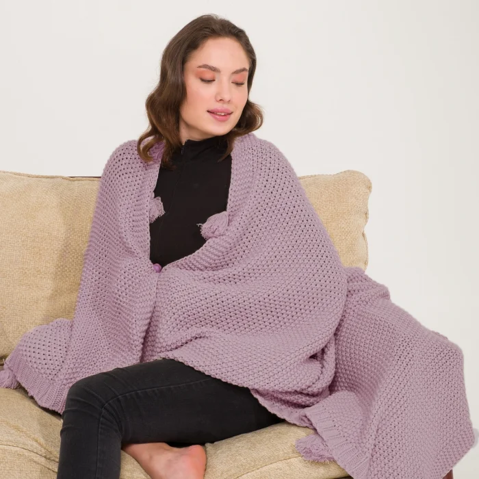 Coco Brass Knitted Knitwear Blanket is made of 100% acrylic.
