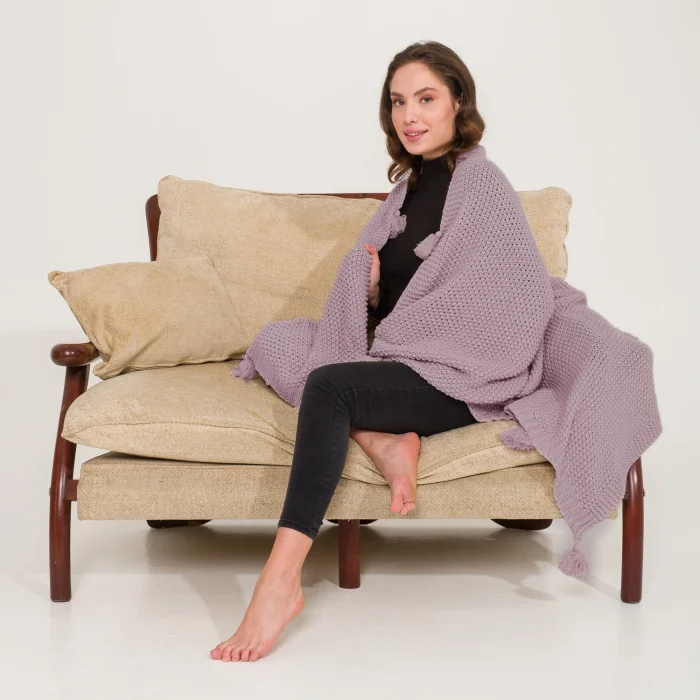 Product: Coco Rice Knitted Pompom Knitwear Blanket Knitting