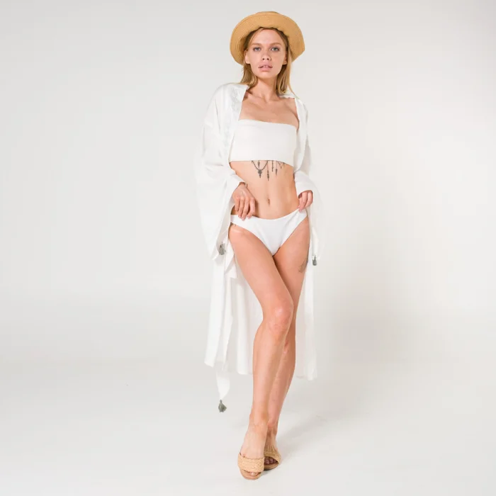 Miespiga Kimonos are produced on special weaving looms in Denizli from 50% cotton 50% viscose first class yarn.