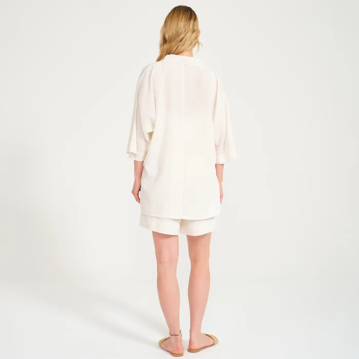 Miespiga Linen Safari Shorts Blouse Bottom Top Set is made of organic cotton.